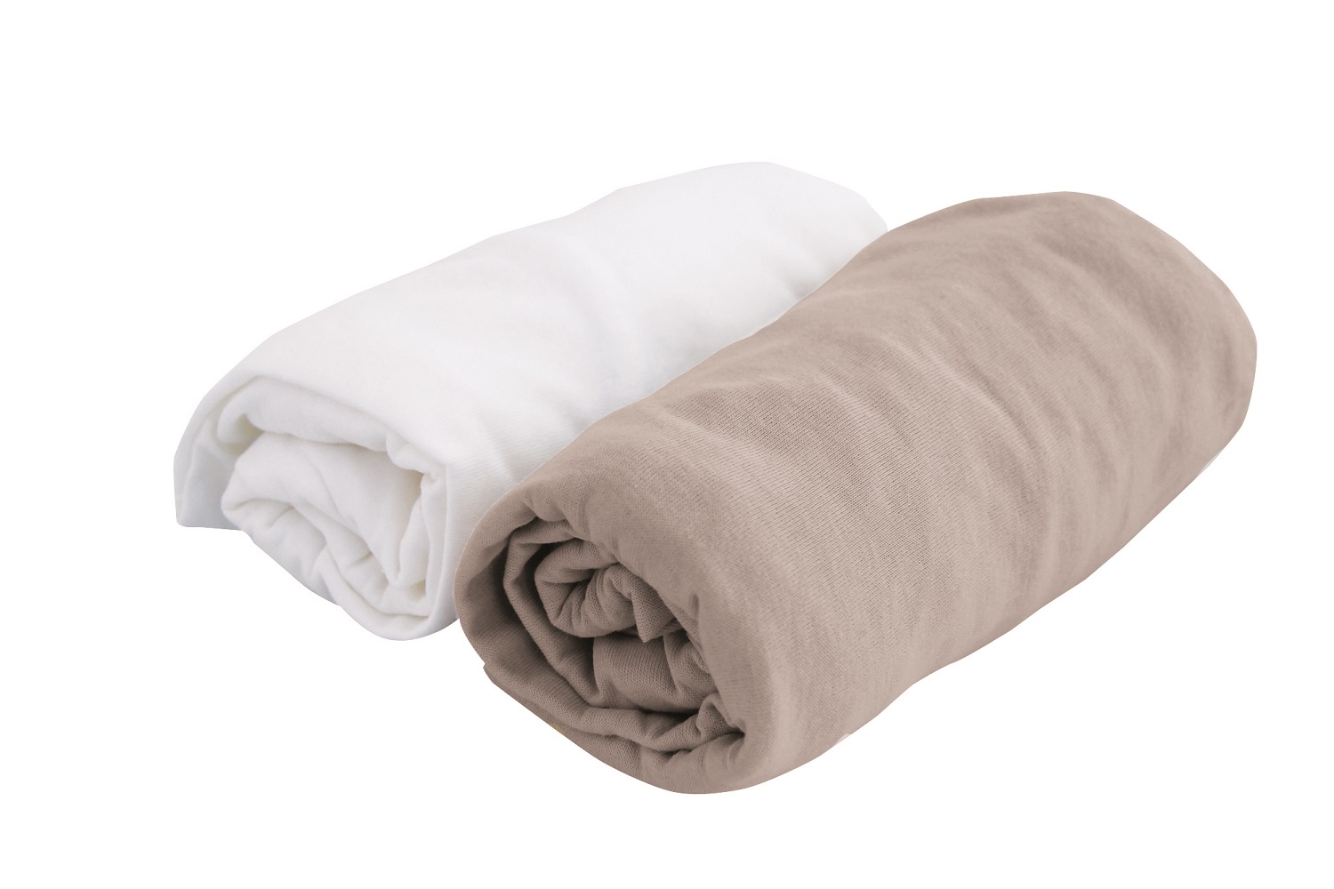 Ce lot de 2 draps housse bénéficie d'une maille extensible pour un ajustement idéal au matelas de votre bébé, ainsi qu'un maximum de confort et de douceur. Vendu par 2 avec un drap housse blanc, vous pourrez changer plus facilement le lit de bébé ! Belle qualité entièrement en coton, Excellente tenue des coloris au fil des lavages. Disponible en coloris bleu/blanc, rose/blanc, perle/blanc et taupe/blanc