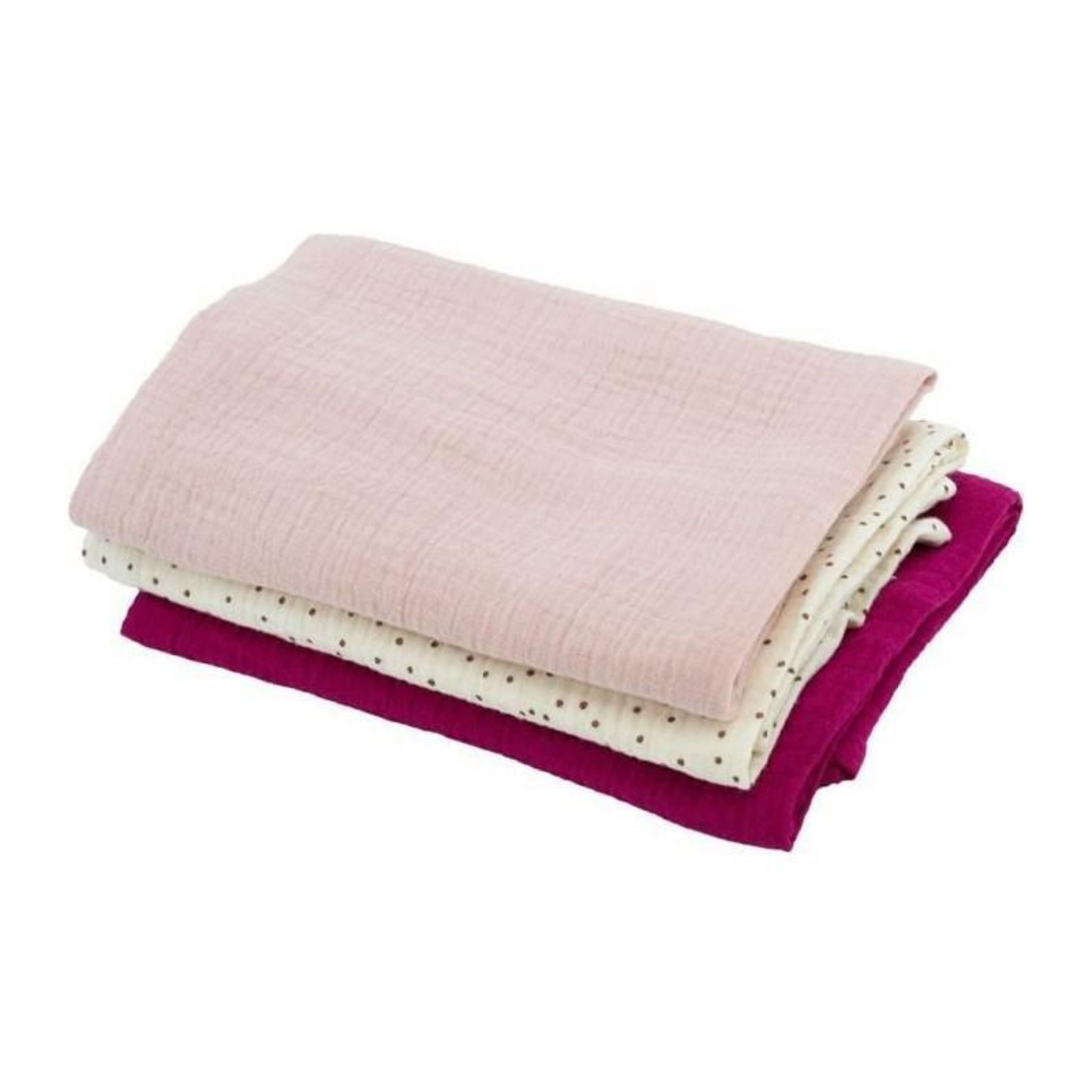 La déclinaison rose grenadine apporte une touche tendance à la layette, tandis que l'association d'un imprimé et de langes unis permet de varier les styles. Leur coupe généreuse facilite l'emmaillotage et s'adapte à toutes les morphologies de bébé.