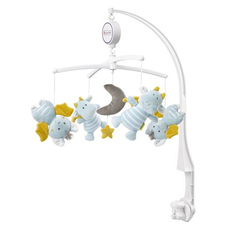 Le mobile musical Dragons de la collection Little Castle capturera certainement le cœur de votre bébé. Le dragon intrépide et la chauve-souris audacieuse hantent leur petit château et emmènent votre bébé dans un voyage au pays des rêves. Le carillon mécanique avec interrupteur marche / arrêt f
