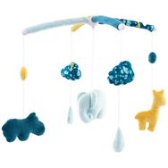 Le mobile musical Za Ni Mo bercera bébé pour l'emporter dans des rêves merveilleux. Découvrez toute la collection ZA NI MO, quand Zaza la girafe rencontre Nini l'hippo et Mo l'éléphant dans l'univers merveilleux de la jungle. Sujets détachable et lavable. Arche PVC Blanc avec fixation à molette. B