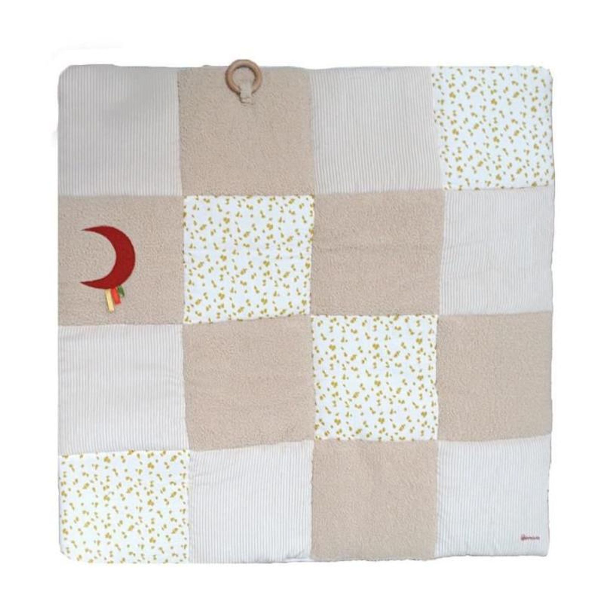 Tapis d'éveil - DOMIVA - Honey Moon - Patchwork - Anneau en bois et lune décorative