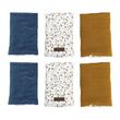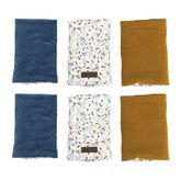 Fabriqué à partir de double gaze 100% coton et ouate 100% polyester, le produit allie légèreté et résistance. Les matériaux hypoallergéniques assurent un contact délicat avec la peau fragile des nourrissons, idéal pour un usage quotidien.
