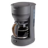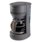 Cette cafetière électrique à filtre au design moderne combine des finitions grises et des accents façon bois. Conçue pour une utilisation domestique quotidienne, elle allie compacité et simplicité d'utilisation.