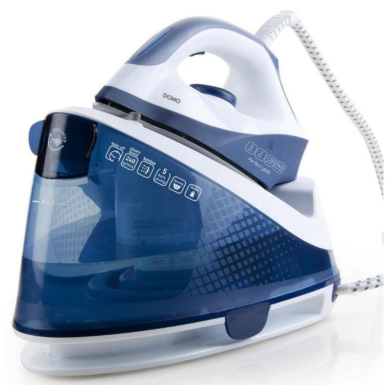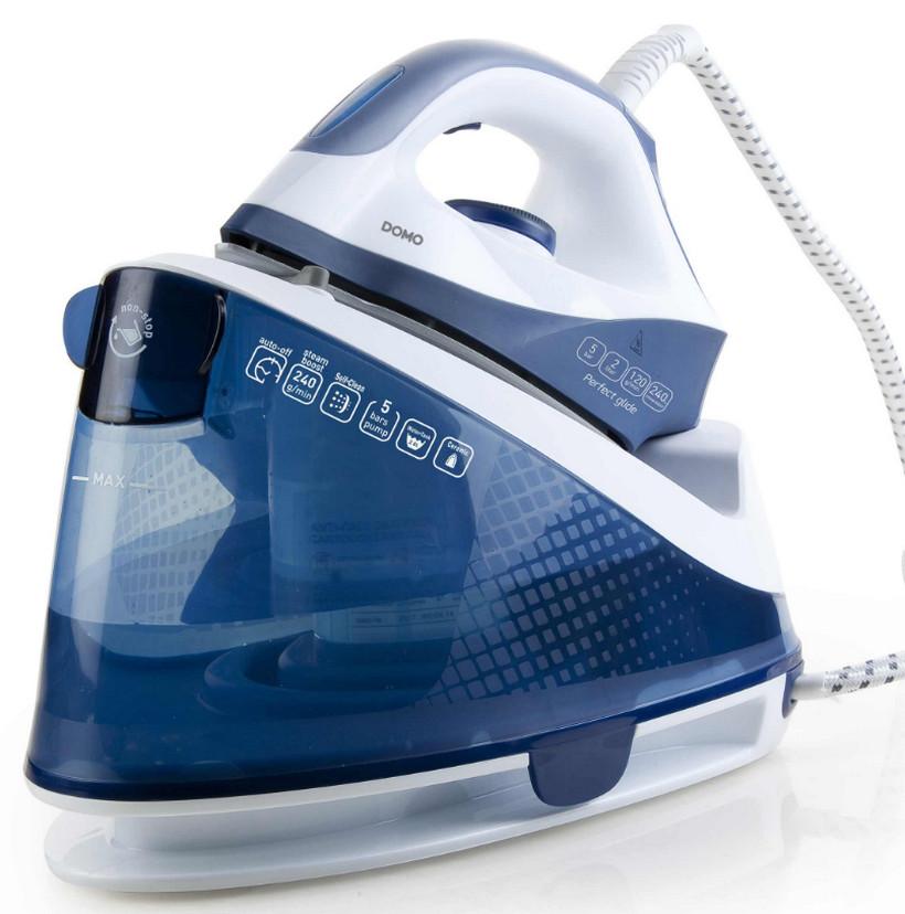 Domo DO7109S Centrale vapeur Domo DO7109S avec pompe à vapeur puissante intégrée. Pointe de précision très utile lors du repassage des cols et autour des boutons. Réchauffement ultra rapide: prêt à l?emploi presque immédiat. Panneau de commande avec des lampes témoins : eco - marche/arrêt - nettoyag
