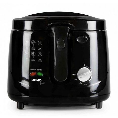 Domo DO461FR Friteuse Domo DO461FR dotée d'une poignée avec mécanisme de levage pour relever et abaisser le panier. - Type de produit : Friteuse.Capacité : 2.5 L.Puissance : 1800 W.?Cool touch?.Thermostat réglable.Couvercle amovible.Hublot et filtre anti-odeurs.Cuve avec couche anti-adhérent.Deux té