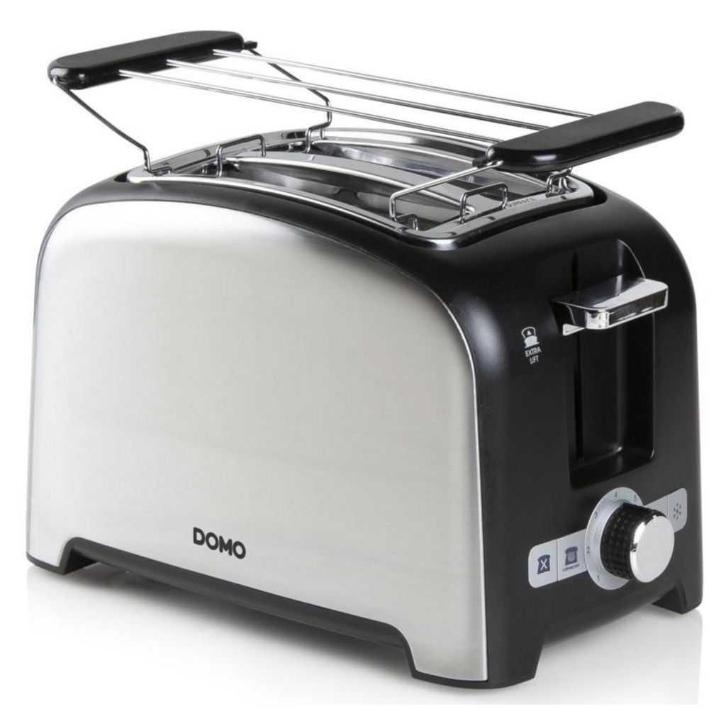 Domo DO959T Grille-pains Domo DO959T en acier inoxydable avec 2 fentes. Doté 7 niveaux de puissance et 4 touches de fonction dont réchauffage, décongélation, annulation et fonction croustillante.