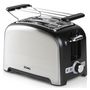 Domo DO959T Grille-pains Domo DO959T en acier inoxydable avec 2 fentes. Doté 7 niveaux de puissance et 4 touches de fonction dont réchauffage, décongélation, annulation et fonction croustillante. - Type de produit : Grille-pains.Matière : Acier inoxydable.Nombre de fentes : 2.Coloris : Noir.Niveaux