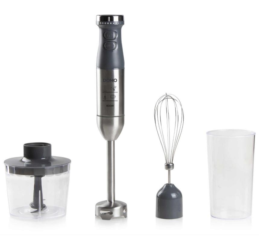 Domo DO9226M Mixeur plongeant Domo DO9226M avec tige amovible en métal et pied en acier inoxydable.