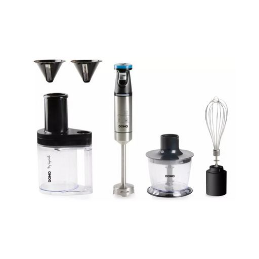 Domo DO9254M Mixeur plongeant DO9254M de Domo.Contrôle de vitesse variable « Ergo press », réglable en continu pour un contrôle parfait, une utilisation aisée et un confort ergonomiqueExécution haut de gamme en inox, éclairage bleu pendant l'utilisation.Ensemble mixeur multifonction pour des applica