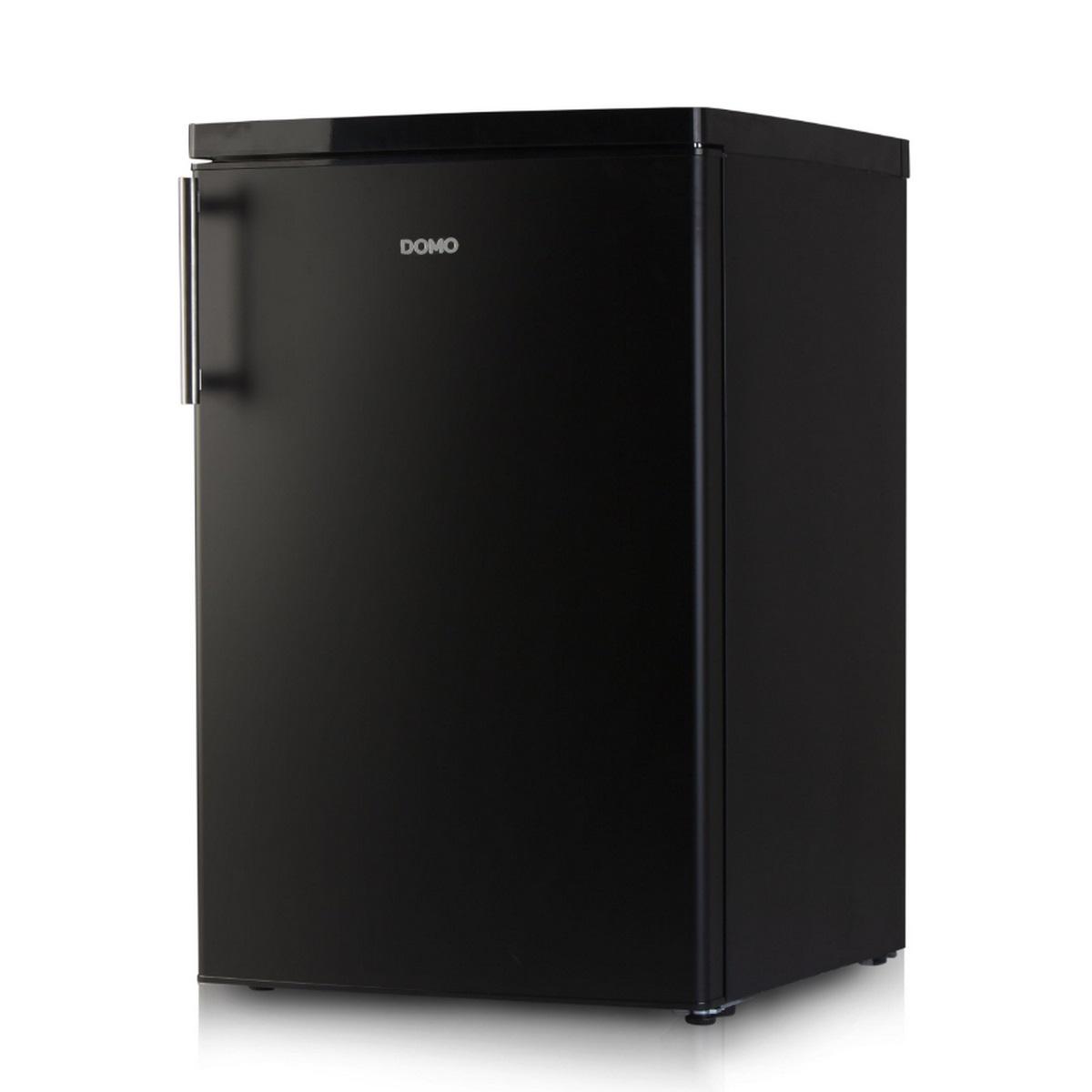 En savoir +Domo DO91124 Capacité 108 L (95+13 litres - 3 étoiles) Controle mécanique de la température 2 etagères en verre + bac à légumes 3 compartiments de porte Dimensions : 55 x 58 x 84,5 cm Classe D Noir