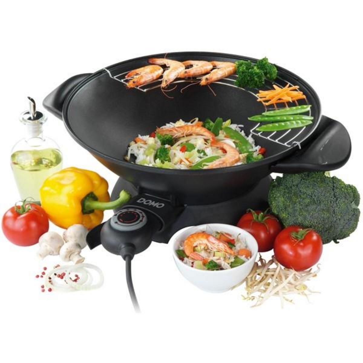 Le WOK électrique DO.8708 de DOMO peut tout faire : du riz cantonnais en passant par le canard aux pousses de bambou, de la paella aux légumes croquants.