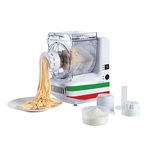 | Invitez les saveurs de l'Italie dans votre cuisine grâce à cette machine à pâtes fraîches au design fiable et soigné. Sa cuve de pétrissage transparente pouvant accueillir jusqu'à 400g de farine permet une meilleure visualisation et donc un meilleur contrôle de la consistance de la pâte. Passez du mode pétrissage au mode extrusion en un clin d'oeil grâce à l'intérrupteur situé sur le côté de l'appareil. Simple à utiliser et à nettoyer, vos pâtes fraîches seront prêtes en un rien de temps... Et il y en a pour tous les palets avec 10 formes de pâtes différentes : spaghetti, rigatoni, tagliatelle, linguine, fettucine, oriental, capellini, lasagne, tortellini, cookie, embout à quenelles régalez tous vos convives ! |