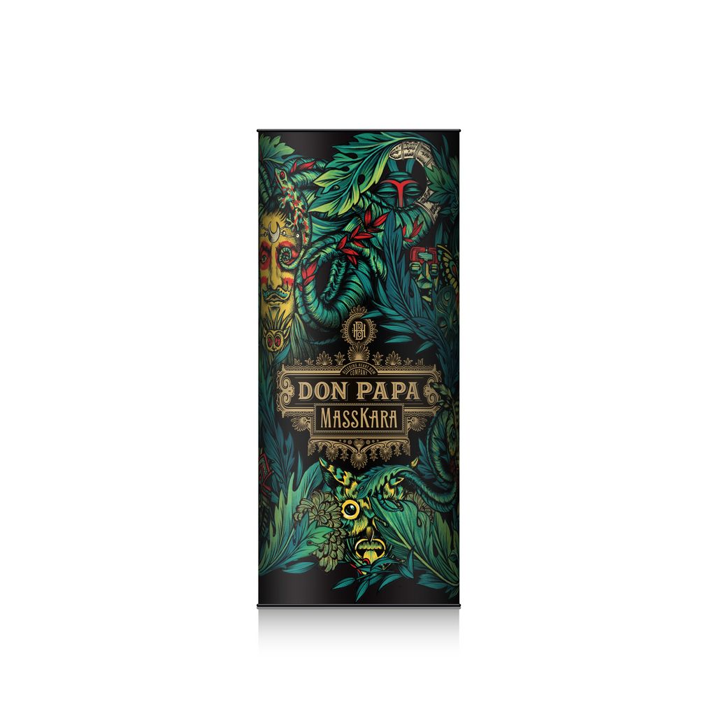 Elaboré à partir de mélasses issues des cannes à sucre cultivées sur l’île de Negros, Don Papa Masskara est vieilli en fût de chêne américain. Il est ensuite assemblé avec une infusion de calamansi et de piment sauvage. Cette cuvée est baptisée Don Papa Masskara pour sa richesse et son exubérance.