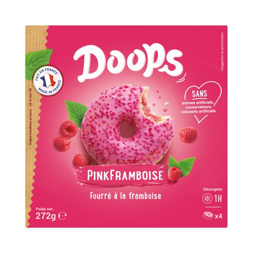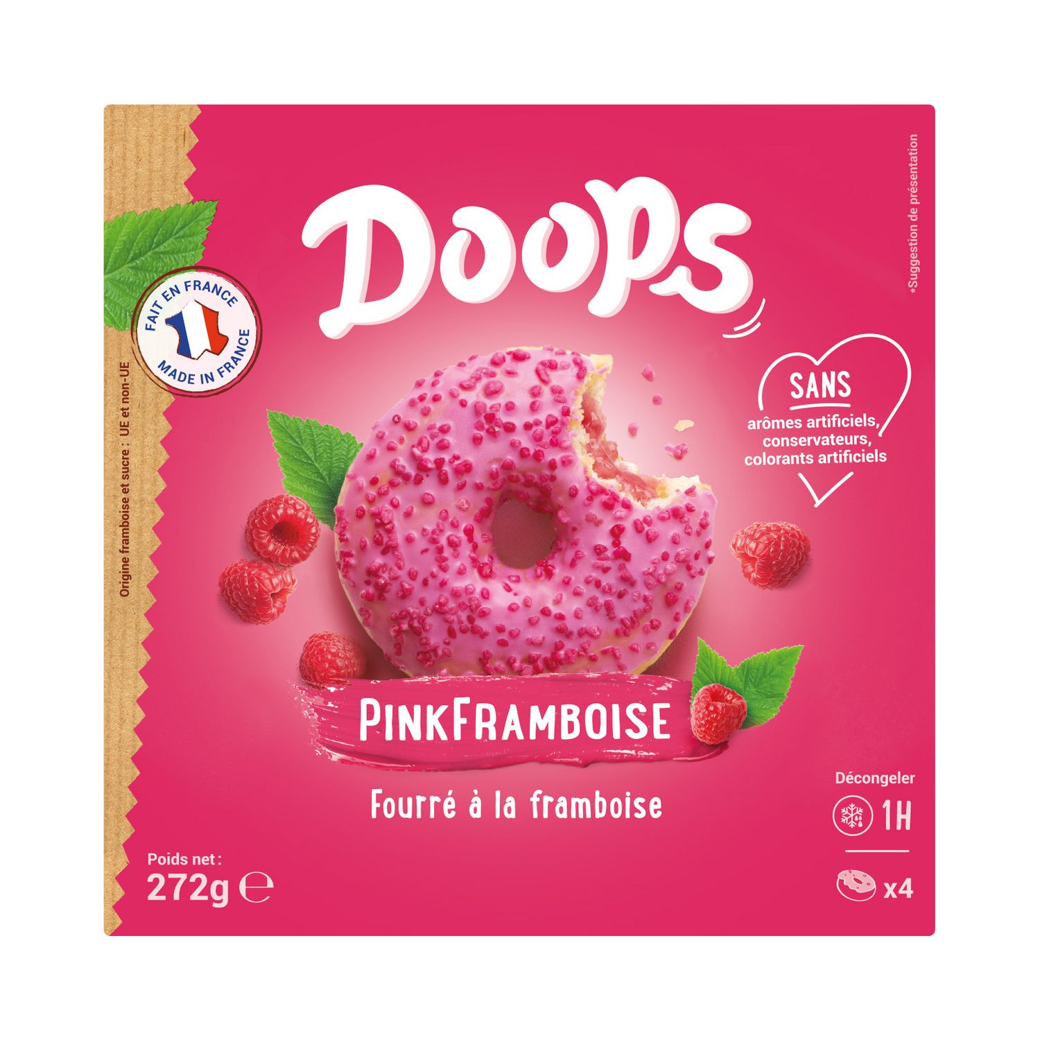 Doops c'est un donut français gourmand et généreux. Pour notre recette PinkFramboise, nous avons rêvé d'une pâte à beignet légère, d'un fourrage fort en fruits et d'un glaçage savoureusement coloré. Parce que Doops, plus qu'un donut, c'est beaucoup de douceur à partager