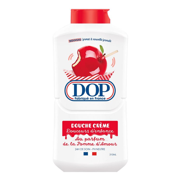 Plongez dans un bain de nostalgie et de douceur avec le gel douche Dop au parfum Pomme d'Amour. Inspiré des célèbres Pommes d'Amour de votre enfance, ce gel douche vous enveloppe d’un parfum croquant et gourmand pour un véritable moment de plaisir sous la douche. • Respectueux de la peau : Formule pH neutre pour la peau, sans savon, sans colorant, et testée sous contrôle dermatologique pour un soin doux et respectueux. • Fabriqué en France à Rambouillet : Certifié Origine France Garantie (COCORICO), garantissant l’authenticité et le savoir-faire français depuis 1934. Fabriqué dans une usine utilisant 100 % d’énergies renouvelables. • Bouteille engagée : Conçue pour tenir la tête en bas pour une utilisation jusqu'à la dernière goutte. Sa mousse onctueuse et légère fera de votre douche un véritable moment de plaisir.