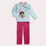 Les filles feront de doux rêves avec ce pyjama Dora l'Exploratrice bicolore ! Velours lisse, confortable et toucher ultra-doux. Haut : col satiné façon cache-coeur avec un petit noeud, manches longues. Animation colorée et gaie avec broderie et motifs appliqués. Pantalon de pyjama contrastant, t