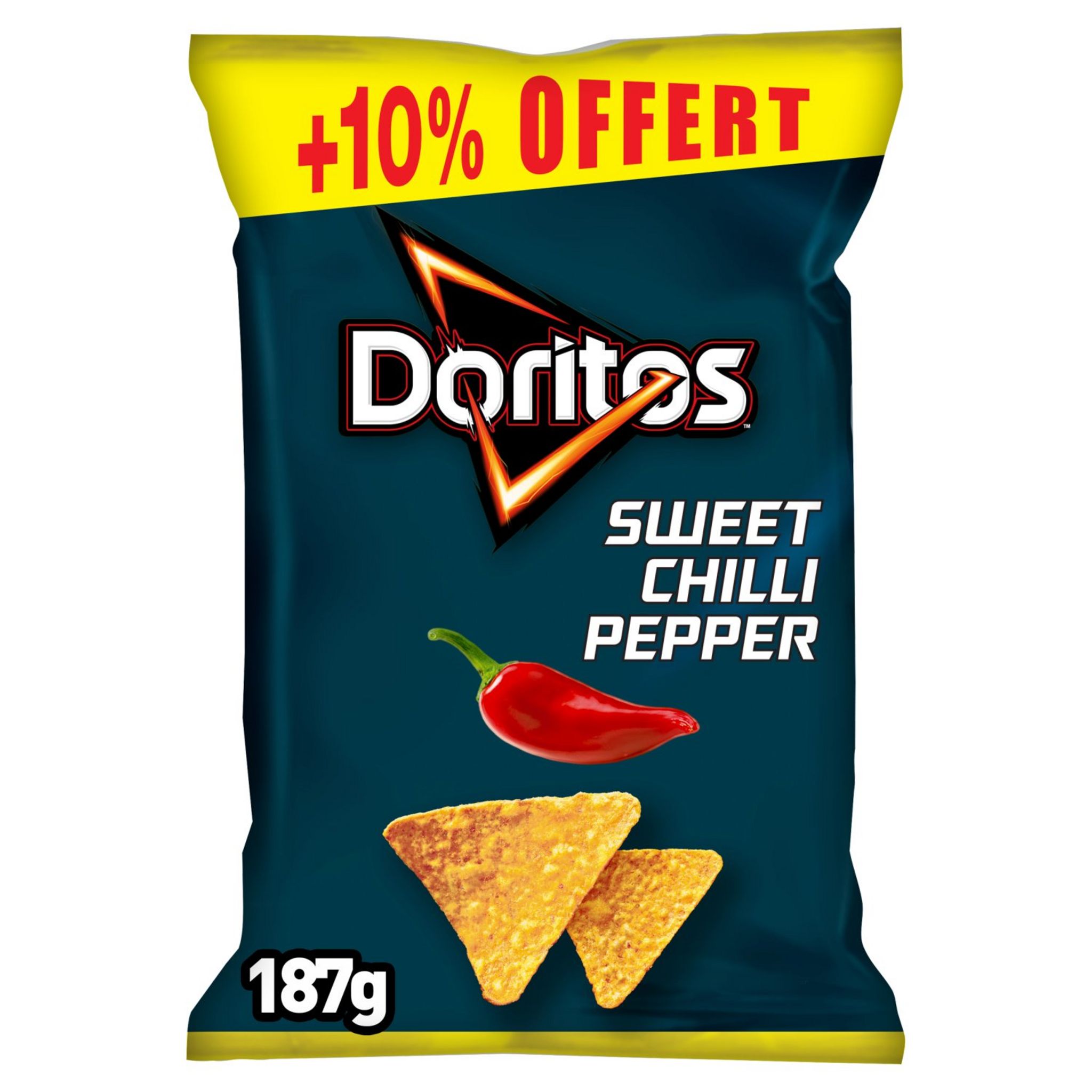 maïs (61%),huiles végétales (tournesol, colza, maïs en proportion variable),base aromatisante piment doux [sucre, arôme (contient BLÉ et SOJA), protéines de SOJA hydrolysées, correcteur d'acidité (diacétate de sodium), exhausteurs de goût (glutamate monosodique, 5'ribonucléotide disodique), extrait de piment doux, oignon en poudre, ail en poudre, acidifiants (acide citrique et malique), chlorure de potassium, SOJA, BLÉ, colorant (extrait de paprika)],sel