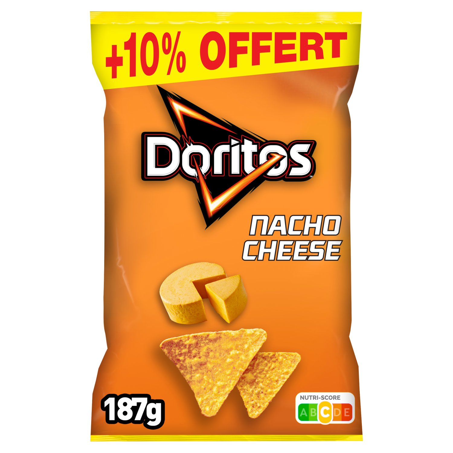 maïs (68%),huiles végétales (tournesol, colza, maïs, en proportion variable),base aromatisante fromage [maltodextrine, poudre de petit-LAIT, farine de BLÉ (contient calcium, fer, niacine, thiamine), FROMAGE en poudre, poudre de tomate, arômes (dont LAIT), poudre d'oignon, poudre de BABEURRE, chlorure de potassium, exhausteur de goût (glutamate monosodique), protéines de LAIT, dextrose, correcteurs d'acidité (acide lactique, acide citrique), colorants (extrait de paprika, bixine de rocou, caramel), épices, sucre, poudre de LAIT écrémé],sel