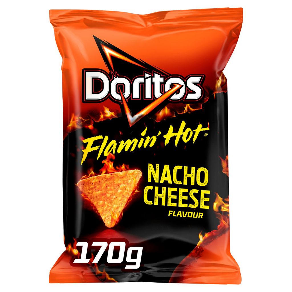 Nacho cheese flavour = goût fromage épicé Warning: now it's hot! = attention: ça va piquer !