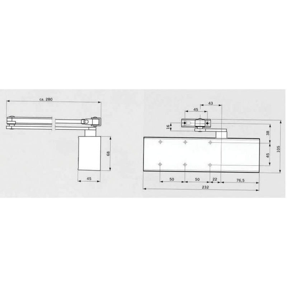 Fermeporte à pignon et crémaillère avec force de fermeture. Vitesse de fermeture réglable par vis. Réversible. Force réglable 3 4. Les fermes portes sont livrés sans bras.