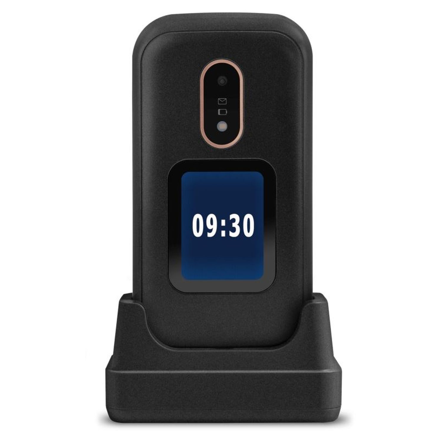 Écran 2.8 pouces - Écran externe - Indicateur visuel de sonnerie - Réglage volume - Compatible appareils auditifs - Touche d'assistance - GPS - SMS - Appareil photo 3 Mpx - DAS Tête : 0.595 W/Kg Corps : 1.499 W/Kg - Livré avec support de charge