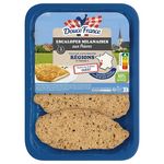 Ingrédients : FFilet de poulet 82%, farine de blé, eau, arôme naturel, sel et minéraux de mer (potassium, magnésium, calcium), dextrose, poivre noir 0,4%, levure, poivre blanc 0,1%, épices. Traces de lait et d'œuf. Viande de poulet origine France