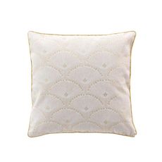 Coussin déhoussable CREST - Polycoton imprimé métallisé - 45 x 45 cm - Ecru
