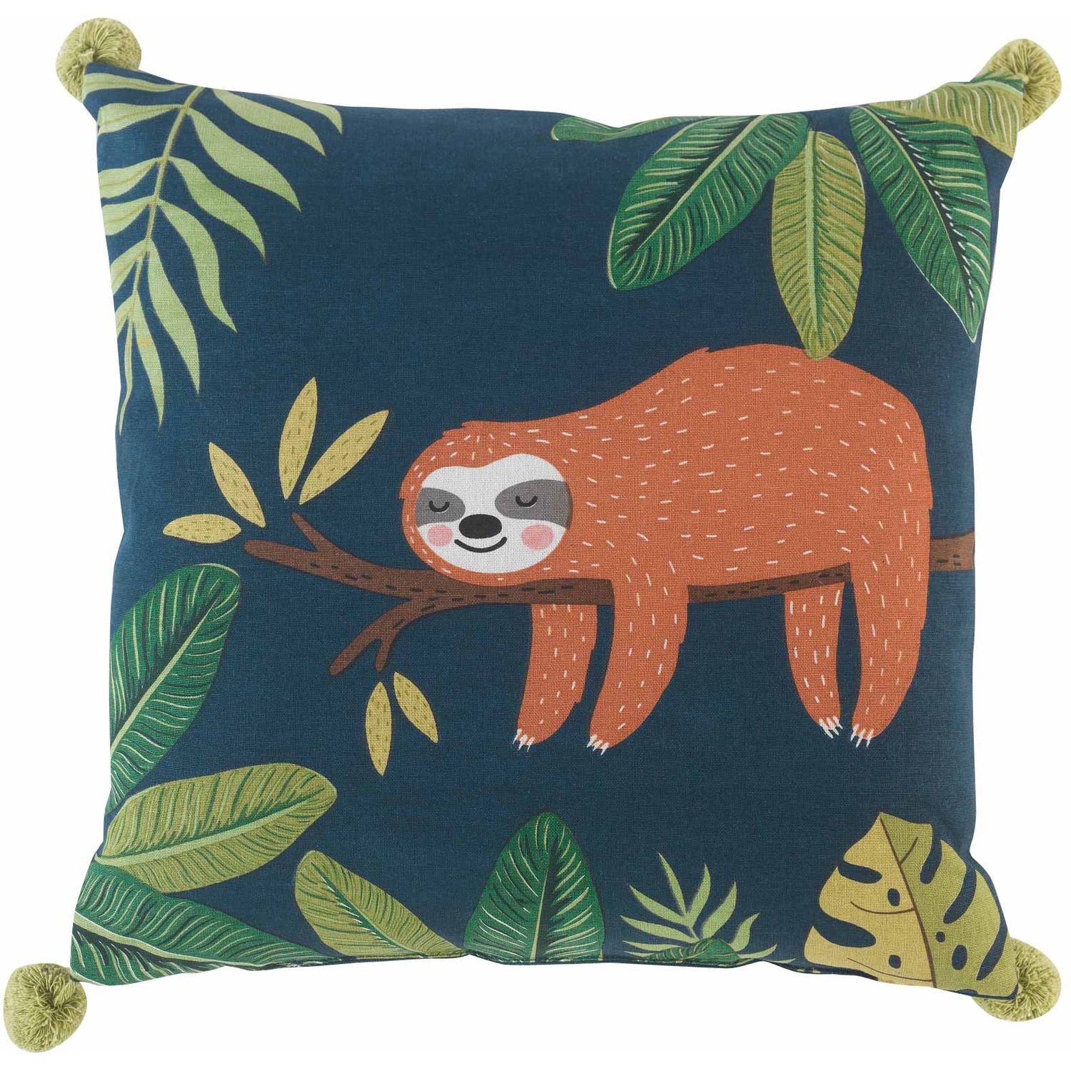 En savoir +Coussin imprimé paresseux. Ce joli animal perché sur son arbre ! Coussin 40x40cm orné de pompons verts aux extrémités.