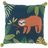 Coussin imprimé paresseux. Ce joli animal perché sur son arbre ! Coussin 40x40cm orné de pompons verts aux extrémités.