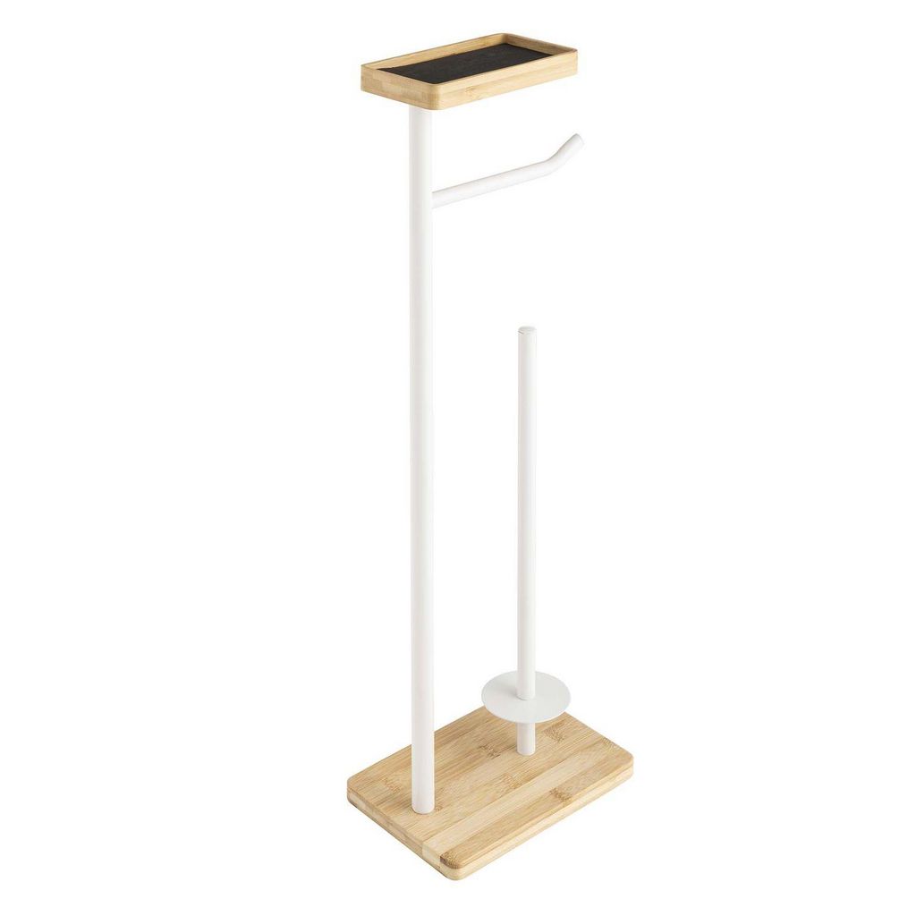 Dérouleur de papier WC en bambou avec porte-téléphone - Blanc