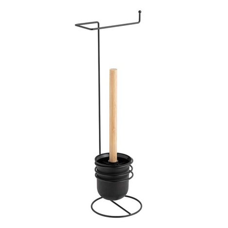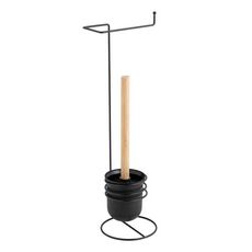 Pour des toilettes pratiques et fonctionnelles, ajoutez ce dérouleur de papier WC avec brosse. En métal et bambou, il apportera une belle finition moderne à vos toilettes.Caractéristiques du dérouleur de papier WC noir en métal :Matières : métal et bambouDimensions : L.16 x l.15 x H.53 cmPoids : 0.453 Kg