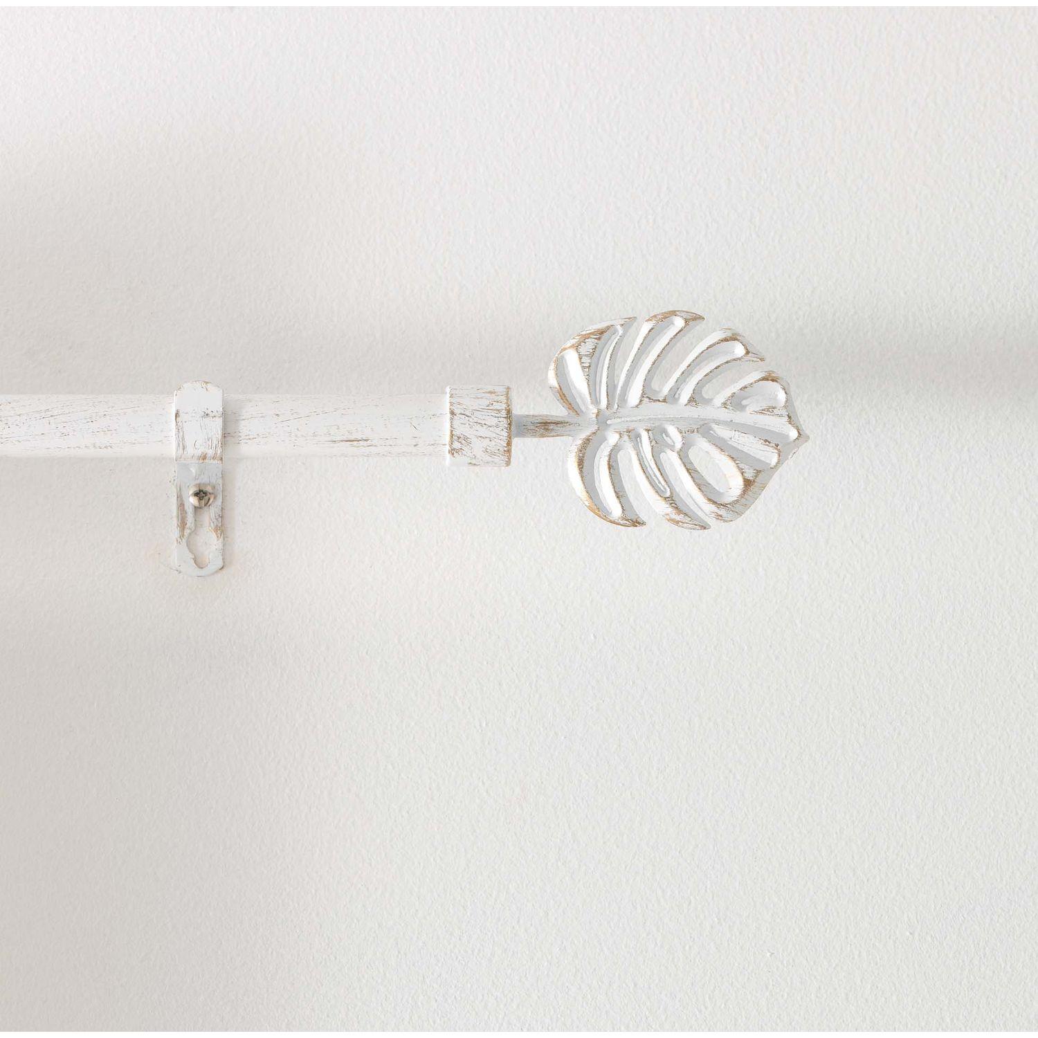 Kit de tringle à rideaux extensible Feuille - L120 /L210 cm - Patine Blanc