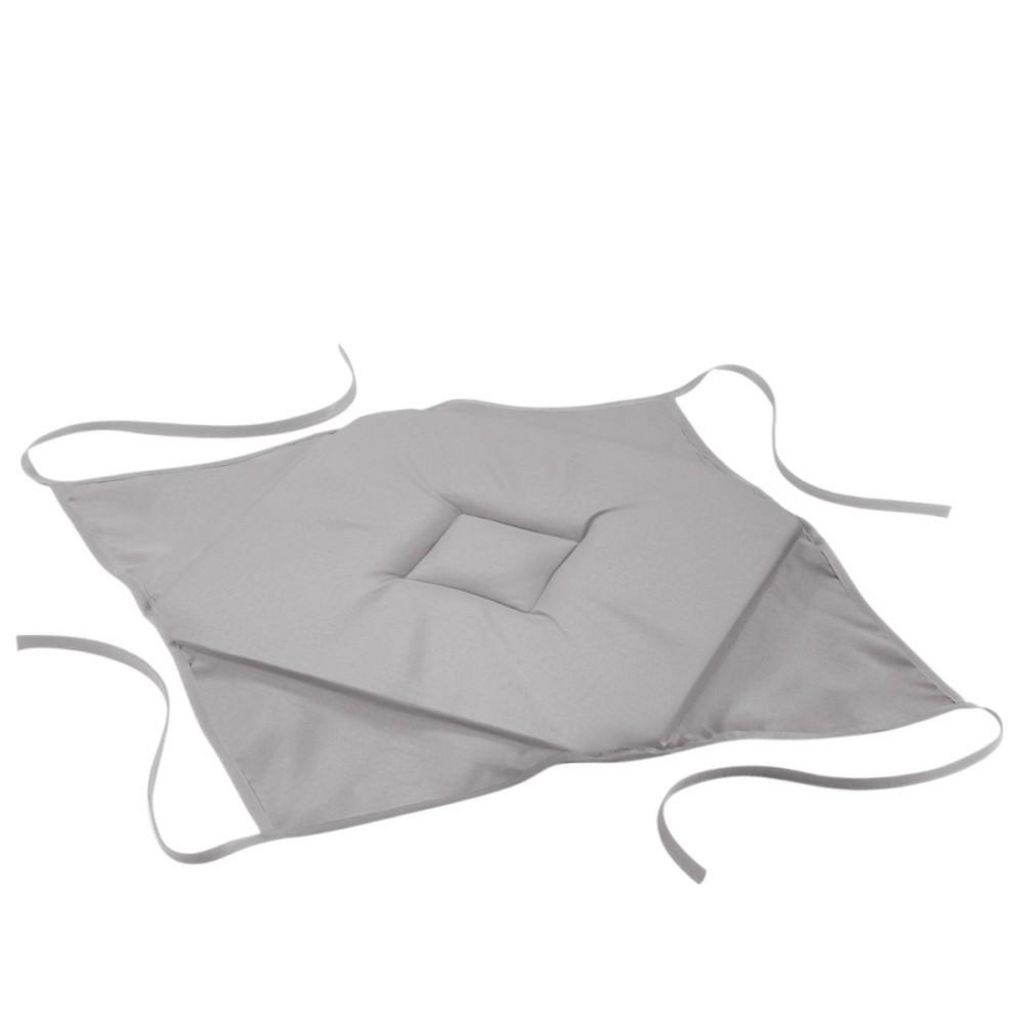 Ces 4 galettes de chaise coloris gris à rabat seront du plus bel effet dans votre cuisine ou votre salon. Fabriquées en polyester , elles sont gage de confort et de style, elles se nouent de façon élégante à la chaise grâce aux bords qui se rabattent et aux 4 nouettes à attacher sous la chaise.Carac