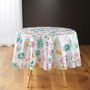 Nappe ronde D180 IndianaLaissez-vous tenter par cette très jolie nappe ronde Indiana de 180 cm de diamètre. Son magnifique imprimé graphique coloré mettra à coup sur votre table en valeur en plus de la protéger grâce à sa conception polyester. Caractéristiques techniques de la nappe ronde D180 India