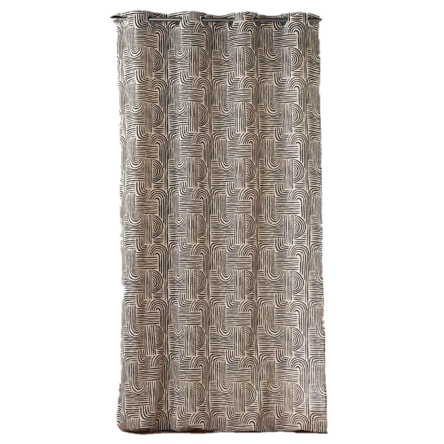 Rideau à œillets ESTERO - Polycoton imprimé - 140 x 240 cm - Ecru et noir