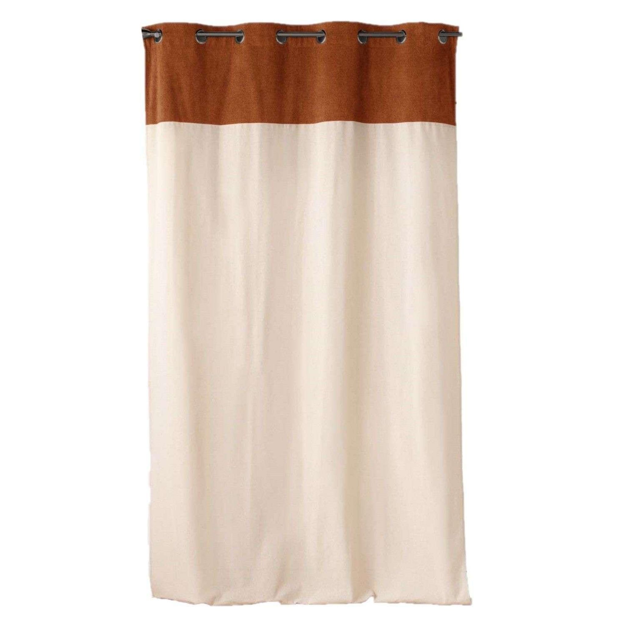 Rideau à œillets HOWEY - Polycoton et top bouclette unie - 140 x 240 cm - Ecru et camel