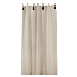 Rideau à passants avec pompons noirs - 140 x 240 cm - Naturel