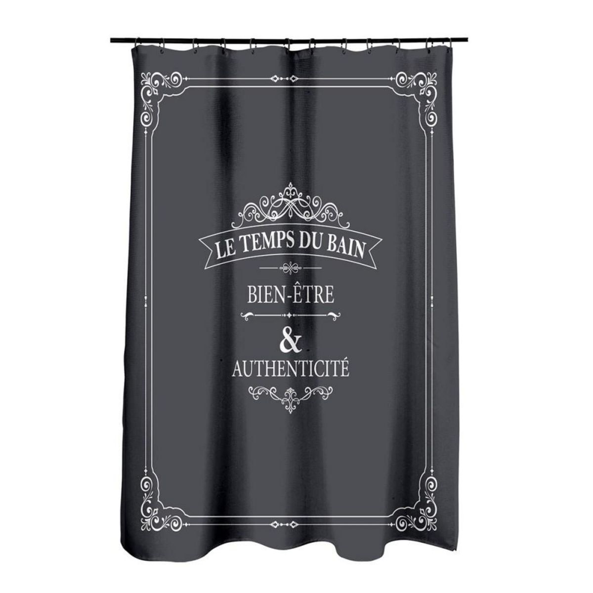 Rideau de douche 180 x 200 cm VintageCréer une décoration rétro dans votre salle de bain grâce au rideau de douche imprimé Vintage de dimensions 180 x 200 cm. Grâce à ce rideau de douche imperméable, vous pourrez prendre votre douche sans éclabousser toute votre salle de bain.Vous allez adorer son dessin rétro avec l'inscription Le temps du bain - Bien-être - Authenticité .Fixation 12 anneaux non fournis, ce rideau de douche 100% polyester est lavable à 30°C.