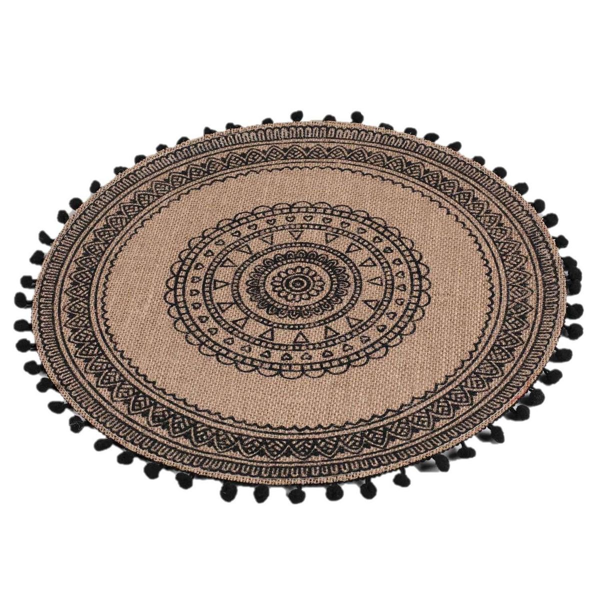 - Set de table en jute imprimée avec pompons