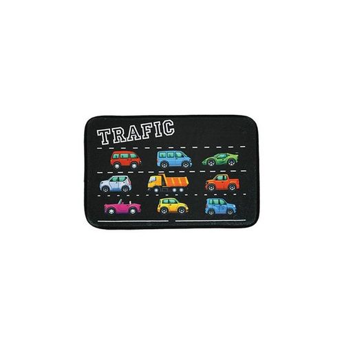 Tapis déco velours 45x75cm antidérapant imprimé dessin Trafic. Composition du tissu : 100% polyester avec finition biais. Facile d'entretienUn tapis pour les passionnés de bagnoles, tacos, voitures, caisses...Conseil d'entretien pour ce tapisLavage 30°CBlanchiment interditRepassage interditSéchage m
