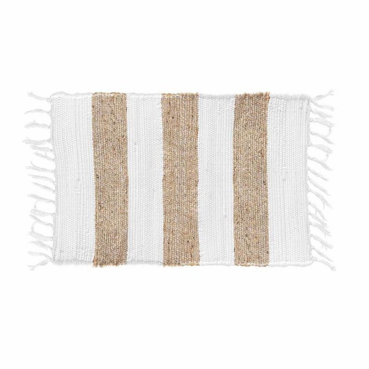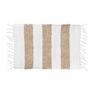 Tapis rectangle à franges 50x80 cm SaganeTrès joli tapis à franges 50x80 cm Sagane beige et blanc rectangulaire de dimensions 50 x 80 cm confectionné en jute et polyester. Apportez des coloris naturels dans votre intérieur avec ce jolis tapis en jute.Informations sur le tapis rectangle à franges 50x
