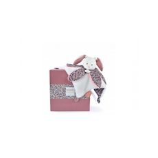 Doudou Lapin Rose pétale Collection Bohaime de la marque Doudou et Compagnie. A l'effigie d'un lapin rose, ce doudou plat favorisera le développement et la motricité de bébé. Les pétales facilitant sa manipulation. Mêlant des tons doux tel que le blanc, le rose, mais aussi le bleu, ce doudou se distingue par ses imprimés floraux.