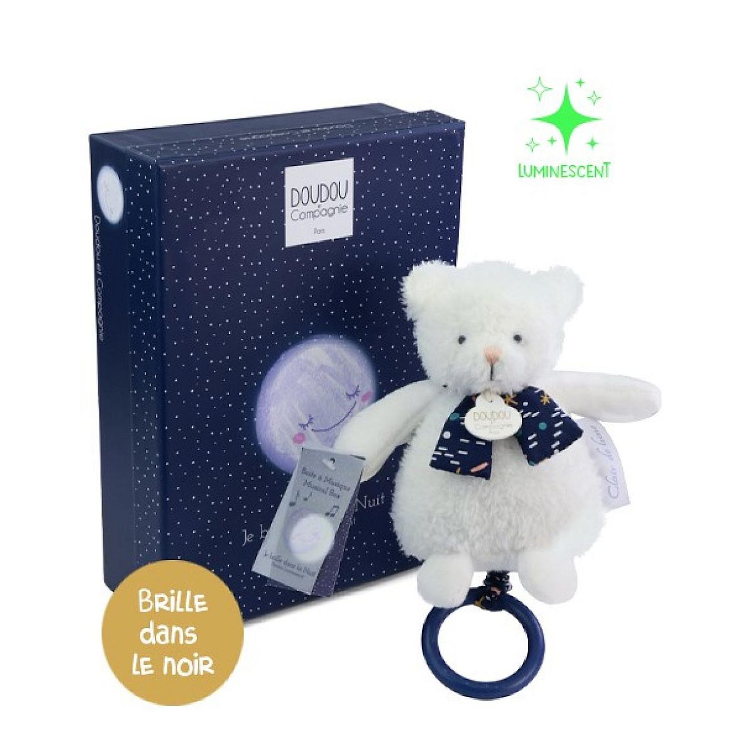 Offrez à votre bébé un véritable cocon de tendresse avec cette boite à musique luminescente. Confectionnée en tissu frisé blanc ultra-doux, elle allie confort et enchantement pour accompagner bébé vers des nuits paisibles. Sa lumière délicate se diffuse dans l'obscurité, créant une atmosphère rassurante et aidant bébé à s'endormir sereinement. Son boîtier musical intégré diffuse une douce berceuse Au clair de la lune , parfaite pour apaiser les tout-petits et favoriser un endormissement en douceur. Un compagnon idéal dès la naissance, mêlant tendresse, lumière et mélodie pour un moment de réconfort absolu.