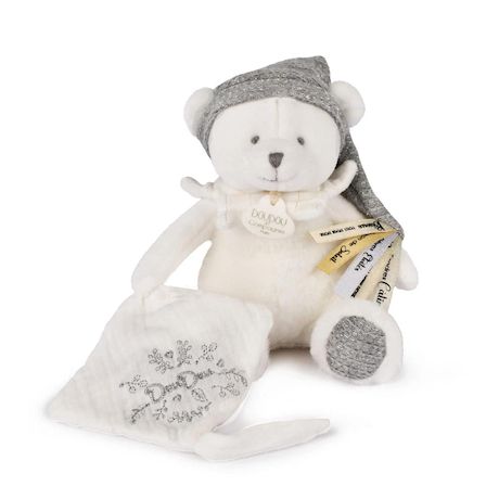 Doudou 25 ans - Ours blanc pantin attache sucette