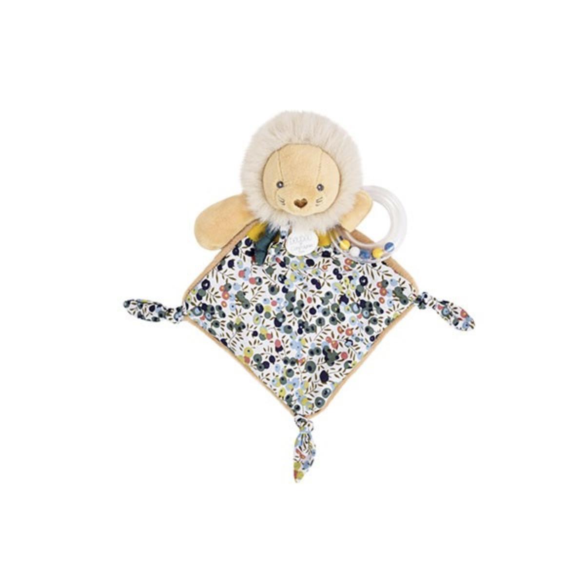 Le Doudou hochet lion de la collection BOH'AIMEest le compagnon idéal pour éveiller les sens de bébé. Avec sa jolie frimousse, ses matières douces et ses textures variées, ce doudou sensoriel offre une multitude de nouettes à manipuler et un imprimé exclusif végétal vert et ocre. Bébé appréciera la