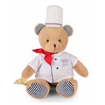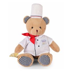 Craquez pour cet adorable ours gourmand, vêtu de sa tenue de chef parisien et tenant fièrement un délicieux croissant ! Avec son petit béret et son tablier de pâtissier, il incarne tout le charme et la douceur de la gastronomie française. Son pelage tout doux et son sourire malicieux en font un comp