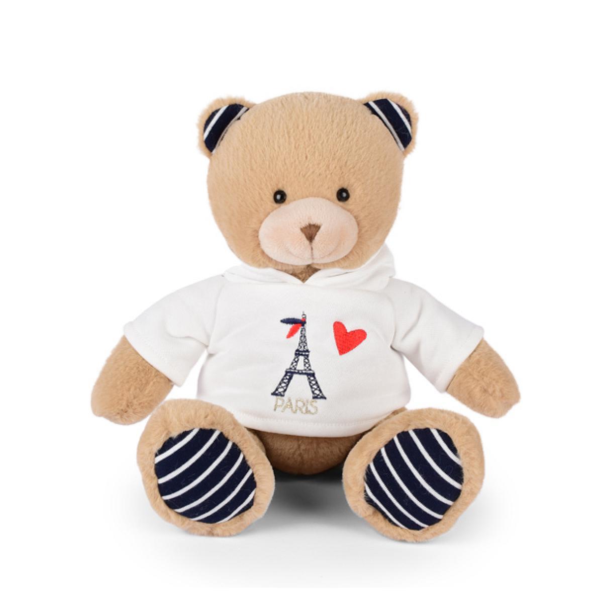 Plongez dans l'ambiance parisienne avec cet adorable ours vêtu d'un sweat à l'effigie de la Tour Eiffel ! Tout doux et irrésistible, il arbore fièrement ce symbole iconique de la Ville Lumière, parfait pour un souvenir charmant et élégant de Paris. Que ce soit pour un cadeau ou une collection, cet ours au style tendance et cocooning apportera une touche de douceur et de chic parisien à votre quotidien.