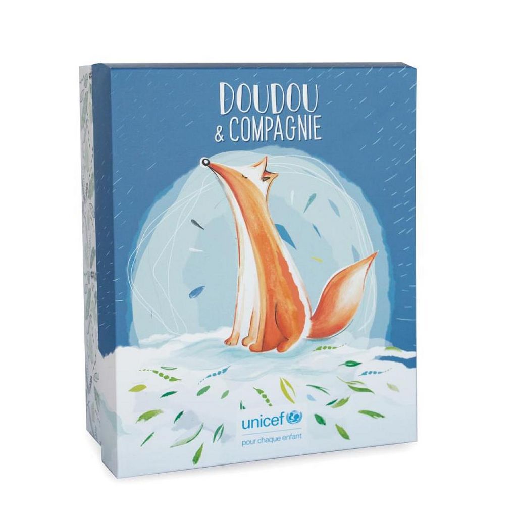 Grâce à cette collection, imaginée exclusivement par Doudou et Compagnie pour UNICEF, chaque Doudou vendu permet de récolter des fonds pour Unicef, pour ensemble continuer à faire avancer les droits de l'enfant. Ce nouveau thème Bébé et moi symbolise le lien du coeur, celui qui se crée entre le bébé et sa maman, son papa ou son entourage. Tendre et douce, cette création nous rapproche aussi de l'essentiel, la nature, car protéger les enfants du monde, c'est aussi protéger leur avenir en se sensibilisant à la préservation de la faune et de la flore. Ce Doudou renard et son bébé sont présentés dans une jolie boîte cadeau au motif végétal raffiné, une boîte tellement bien illustrée qu'elle sera conservée et upcyclée à coup sûr par chacun. Lavable à 30°, c'est un cadeau idéal dès la naissance.