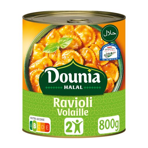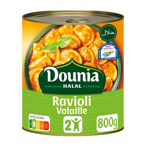 Ingrédients : Eau, ravioli 26,5 % (semoule de BLÉ dur, eau, viande de poulet 4 %, chapelure (dont GLUTEN), carotte, sel, huile de colza, oignon, arôme naturel, épices, plantes aromatiques), purée de tomate mi-réduite 12 %, viande de poulet 3,5 %, carotte, oignon, amidon modifié, sucre, sel, arôme naturel, épices, plantes aromatiques, extraits d'épices (dont CÉLERI), huile de colza. Viande origine France. Traces de lait et oeuf.