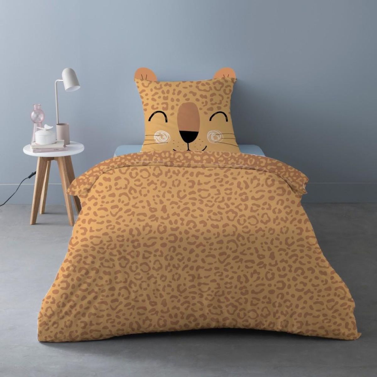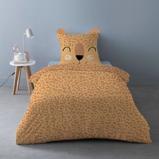 Pour renouveler la décoration de la chambre de votre enfant avec originalité, découvrez la parure de couette LEOPI en 100% coton. Elle comprends une housse de couette 140x200cm et 1 taie d'oreiller assortie avec oreilles .Cette parure de couette 2 pièces LEOPI est composée de :Une housse de couette